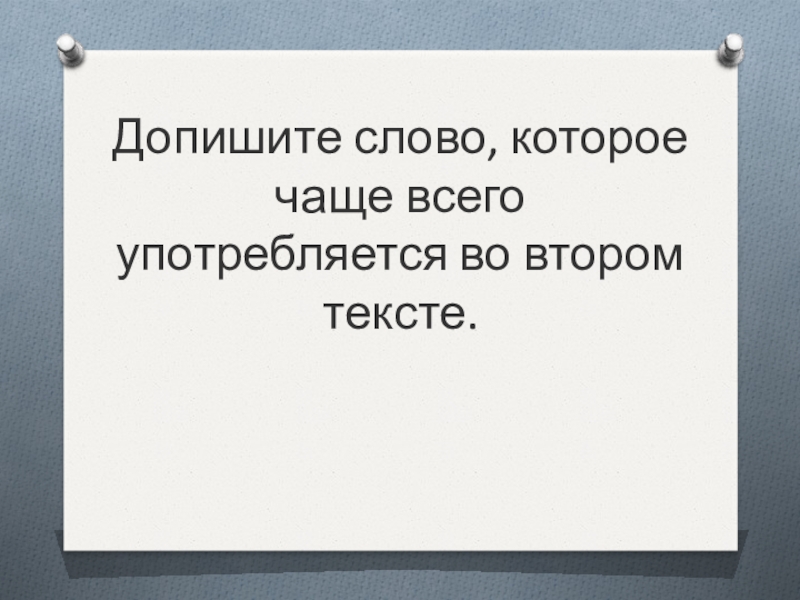 Слайд 9Допишите слово, которое чаще всего употребляется во втором тексте.