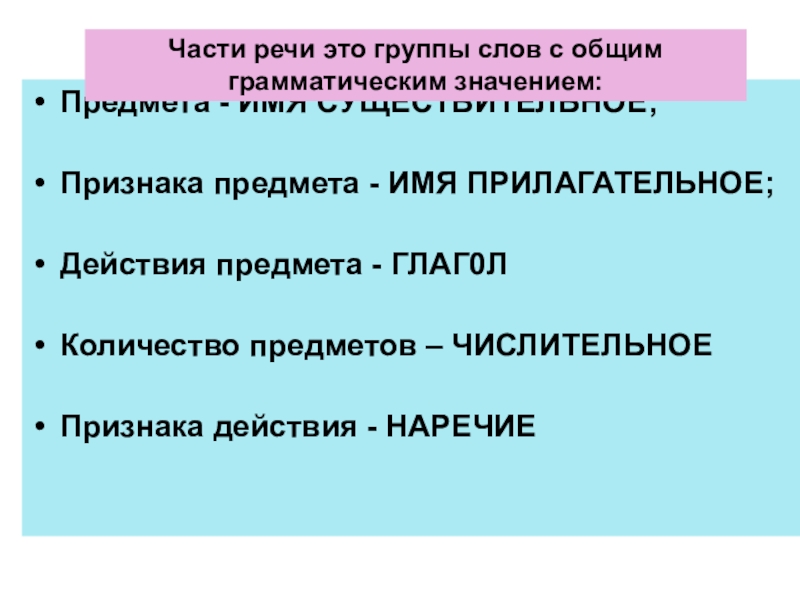 Части речи это группы слов с общим грамматическим значением: