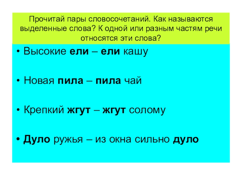 Прочитай пары словосочетаний. Как называются выделенные слова? К одной или разным частям речи относятся эти слова?