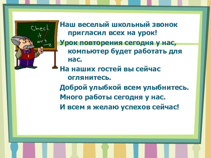 Слайд 3Наш веселый школьный звонок пригласил всех на урок!