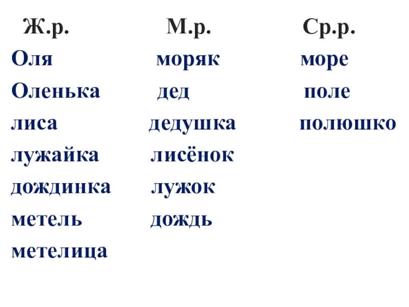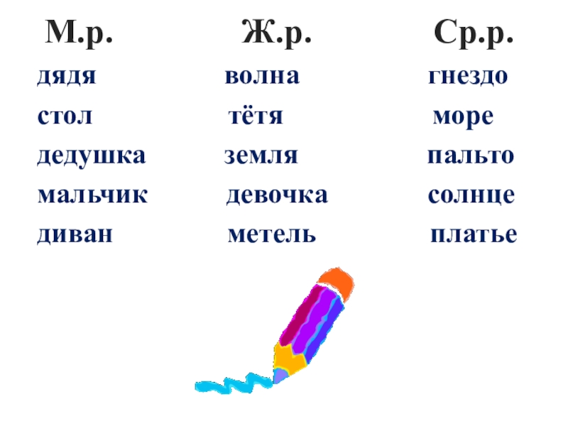 Презентация, доклад по русскому языку на тему Род имён существительных. 2 класс