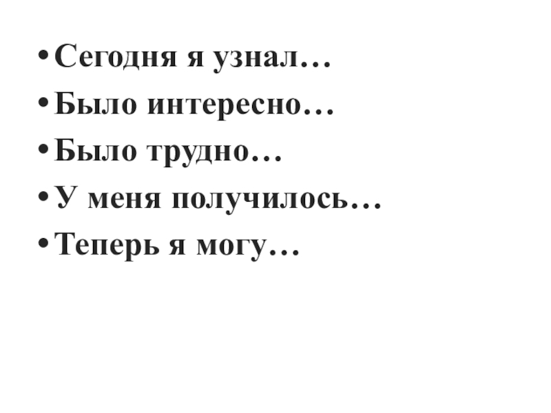 Сегодня я узнал…Было интересно…Было трудно…У меня получилось…Теперь я могу…