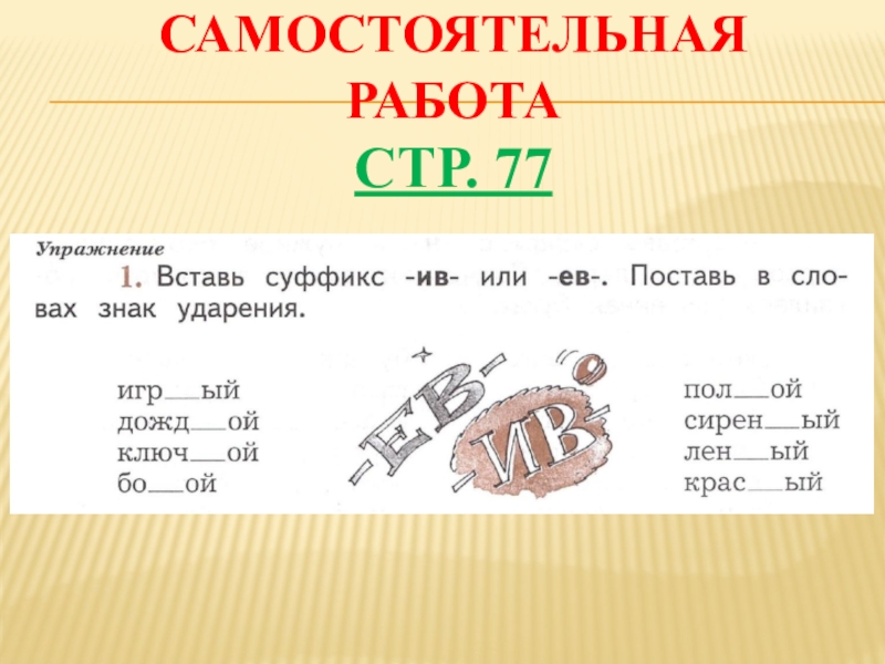 правд..вый, щавел..вый, фальш..вый, груш..вый, лен..вый, вол..вой, сирен..вый, плакс..вый