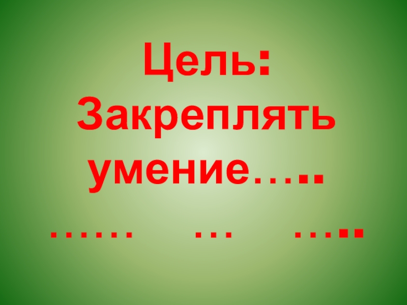 Слайд 8Цель: Закреплять умение….. …… … …..