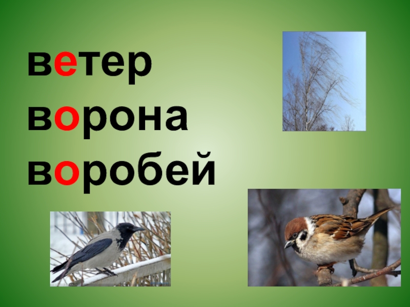 Слайд 4ветер ворона воробей