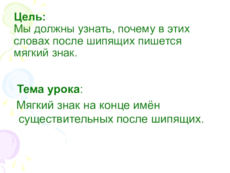 Мягкий знак на конце имён существительных после шипящих.