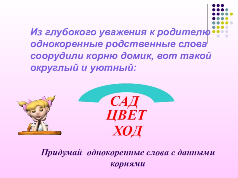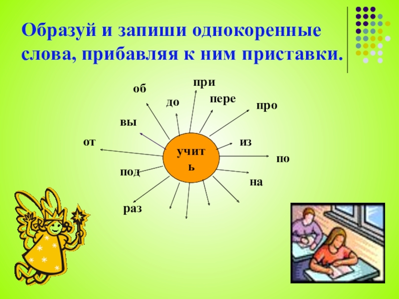 Придумай однокоренные слова с данными корнями