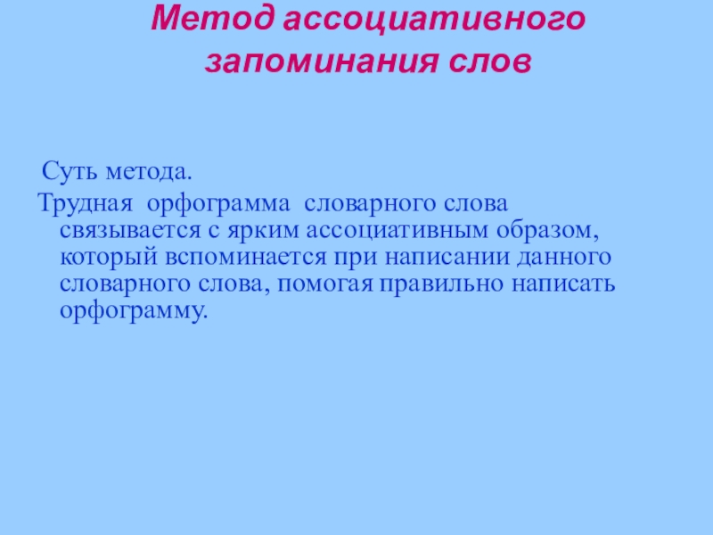 Слайд 10Метод ассоциативного запоминания слов