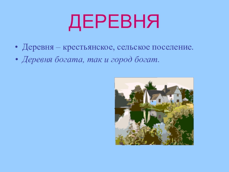 Деревня – крестьянское, сельское поселение.