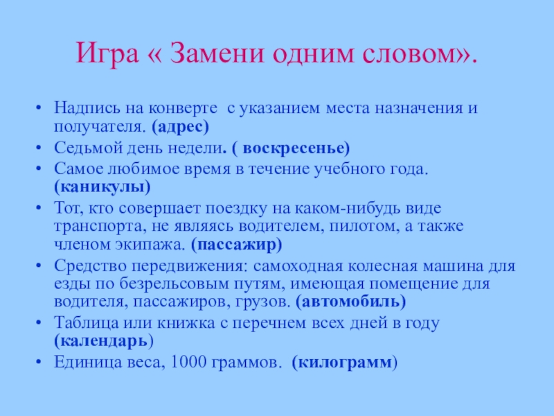 Слайд 32Игра « Замени одним словом».