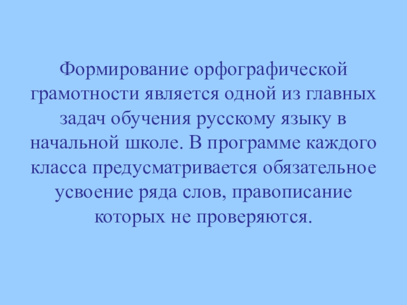 Слайд 2Формирование орфографической грамотности является одной из главных задач обучения русскому языку
