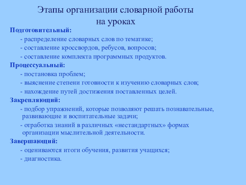 Этапы организации словарной работы