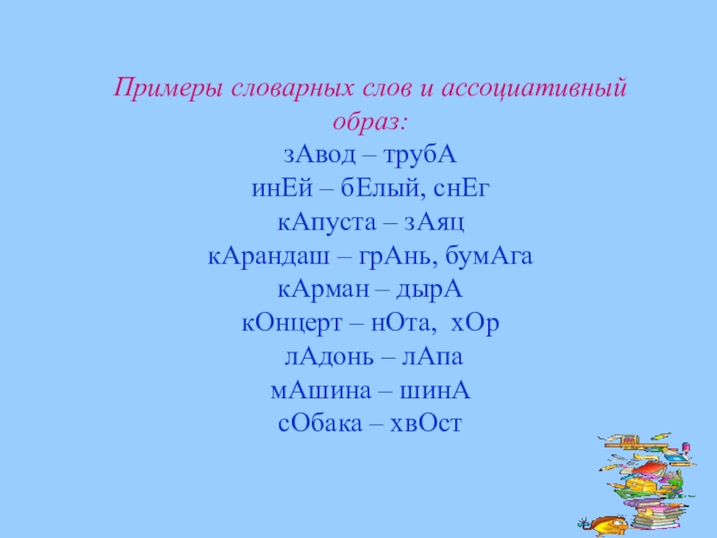 с ярким ассоциативным образом, который вспоминается при написании данного словарного слова, помогая правильно написать орфограмму.