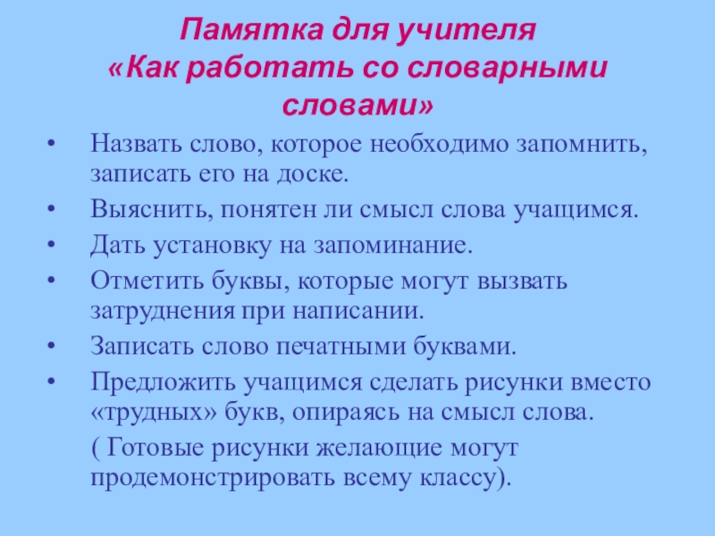 «Как работать со словарными словами»