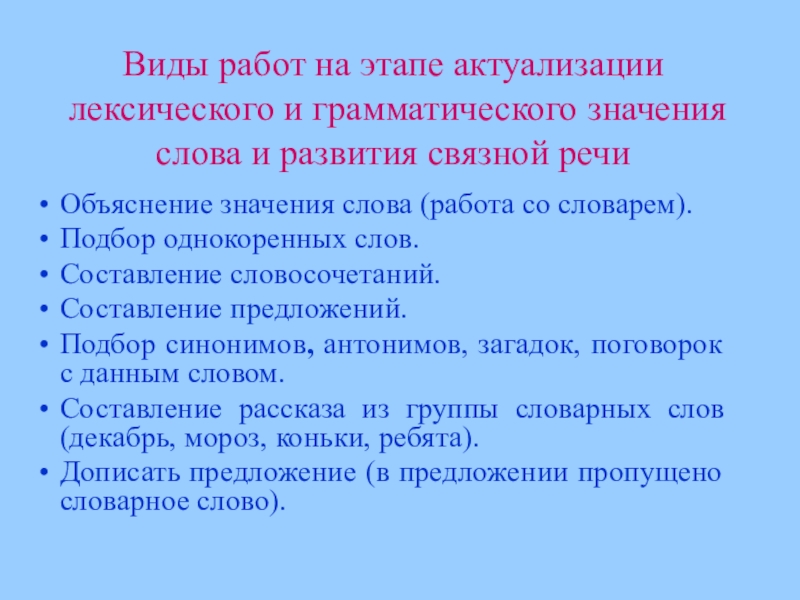 Виды словарной работы