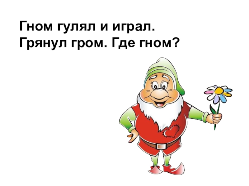 Гном гулял и играл.Грянул гром. Где гном?