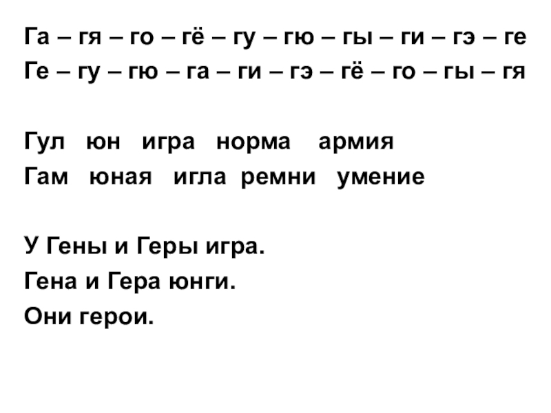 – гы – ги – гэ – ге
