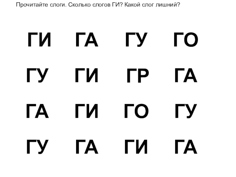 ГРПрочитайте слоги. Сколько слогов ГИ? Какой слог лишний?