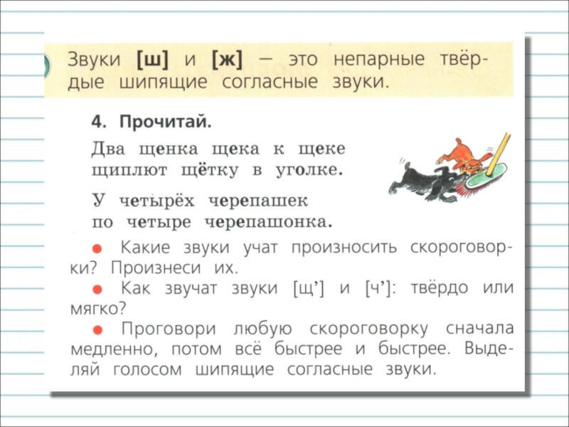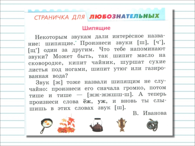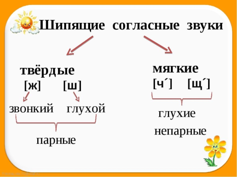 Презентация, доклад по русскому языку на тему Шипящие согласные звуки (1 класс)