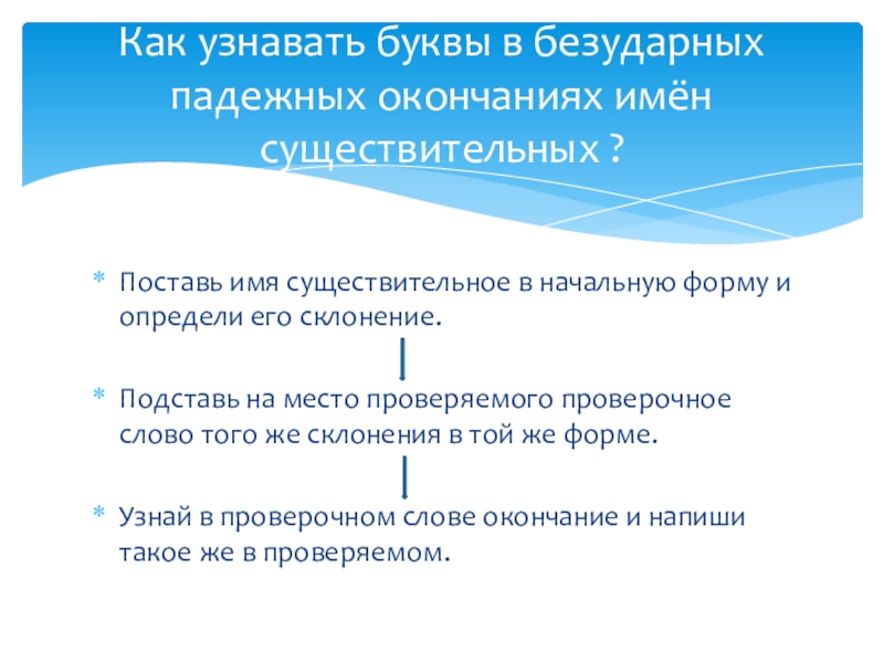 Как узнавать буквы в безударных падежных окончаниях имён существительных ?