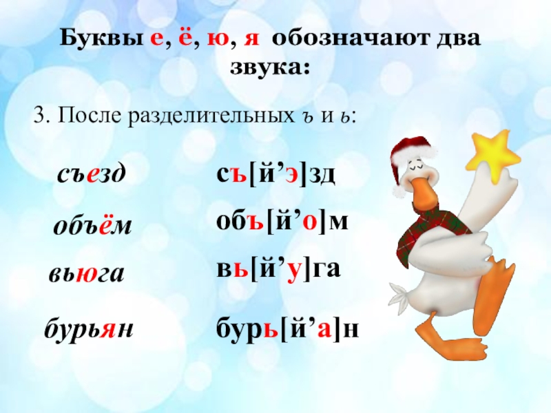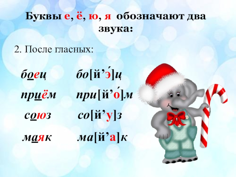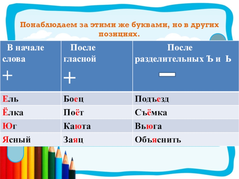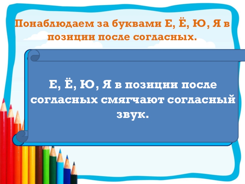 Е, Ё, Ю, Я в позиции после согласных смягчают согласный звук.