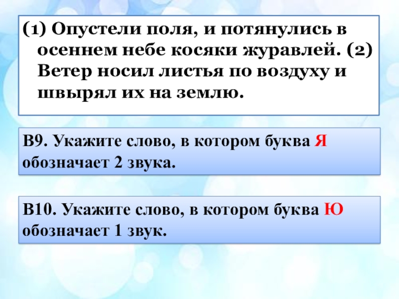 В9. Укажите слово, в котором буква Я обозначает 2 звука.