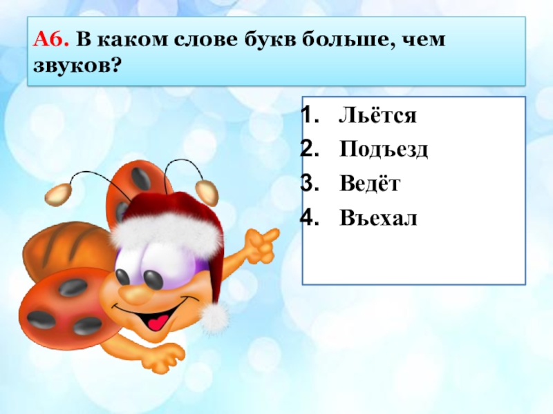 В10. Укажите слово, в котором буква Ю обозначает 1 звук.