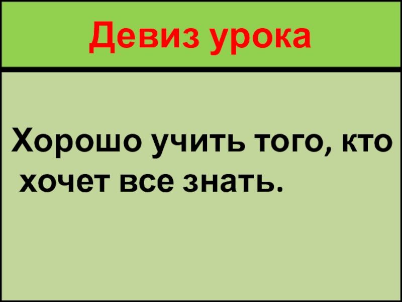 Девиз урока   Хорошо учить того, кто хочет все знать.