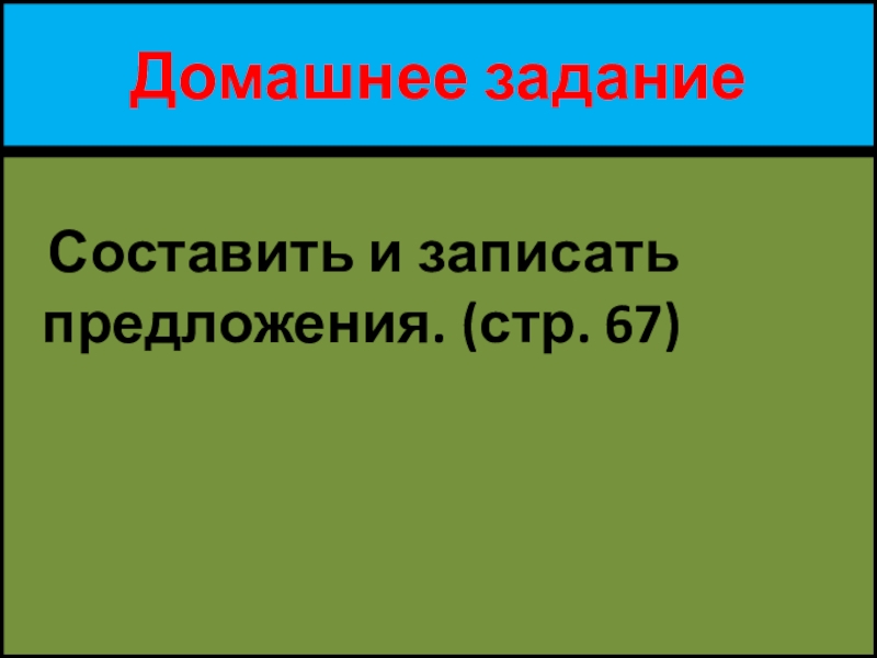 Домашнее задание    Составить и записать     предложения. (стр. 67)