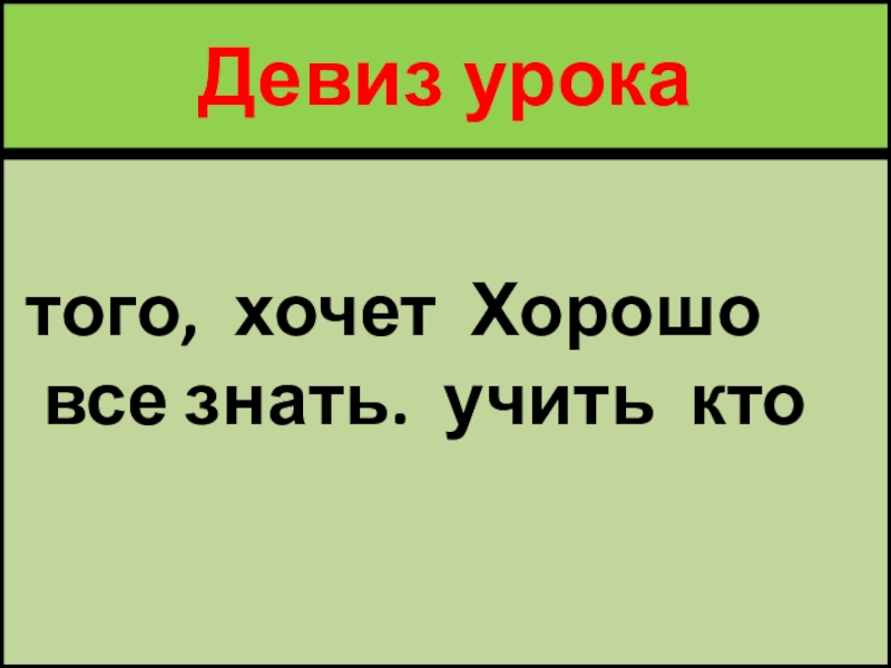 Девиз урока   того, хочет Хорошо все знать. учить кто