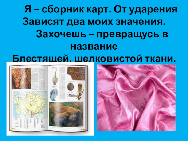 Слайд 16 Я – сборник карт. От ударения Зависят два