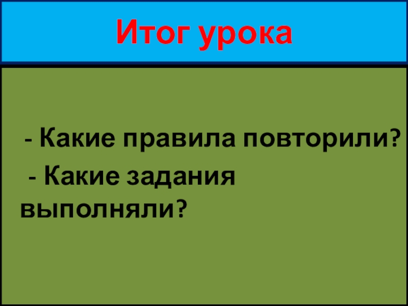 Итог урока    - Какие правила повторили?  - Какие задания выполняли?
