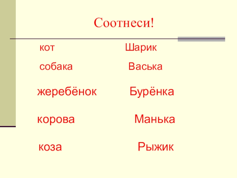 Презентация, доклад по русскому языку на тему Собственные и нарицательные имена существительные. Заглавная буква в написании кличек животных (2 класс)