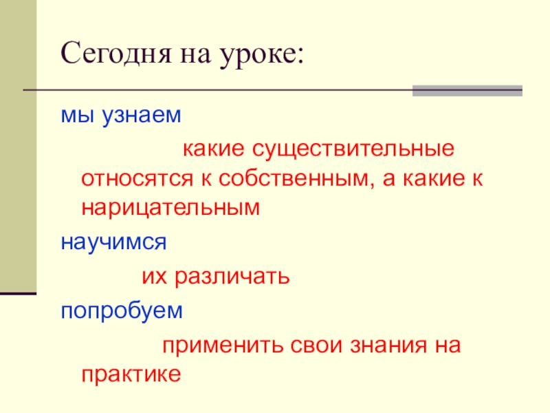 Сегодня на уроке:мы узнаем          какие существительные относятся к