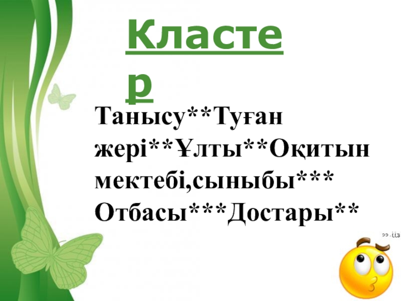 КластерТанысу**Туған жері**Ұлты**Оқитын мектебі,сыныбы***Отбасы***Достары**