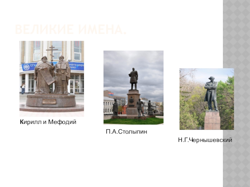 ВЕЛИКИЕ ИМЕНА.Кирилл и МефодийН.Г.ЧернышевскийП.А.Столыпин