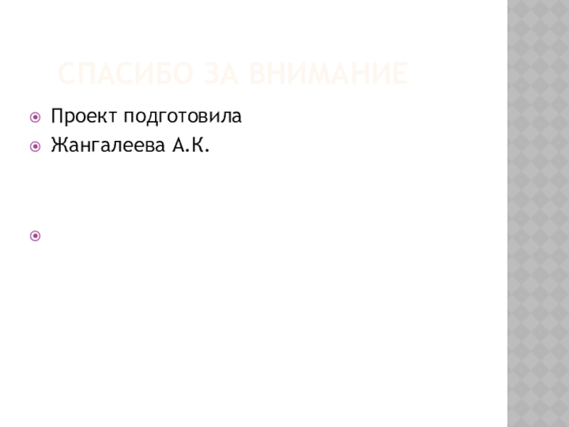 СПАСИБО ЗА ВНИМАНИЕПроект подготовилаЖангалеева А.К.