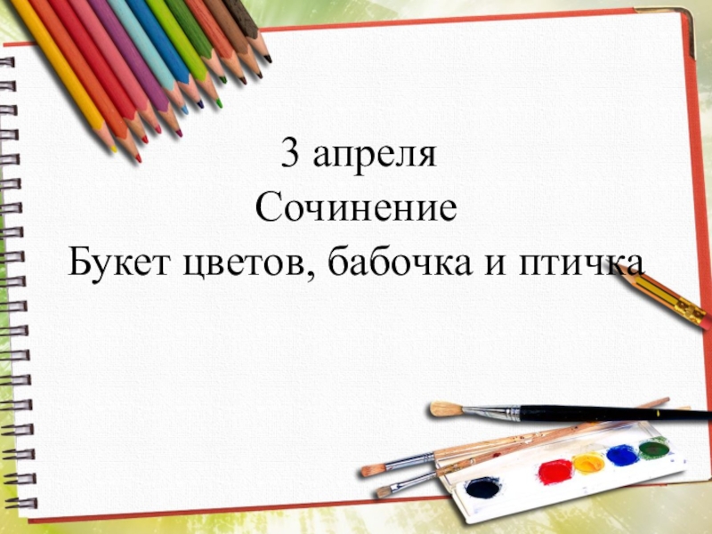 3 апреля СочинениеБукет цветов, бабочка и птичка