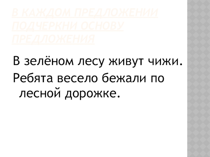 Слайд 7В КАЖДОМ ПРЕДЛОЖЕНИИ ПОДЧЕРКНИ ОСНОВУ ПРЕДЛОЖЕНИЯ