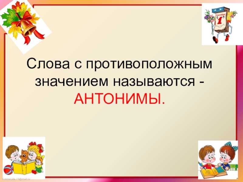 Слайд 13Слова с противоположным значением называются -АНТОНИМЫ.