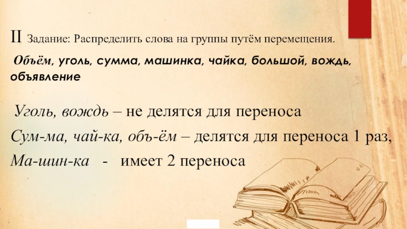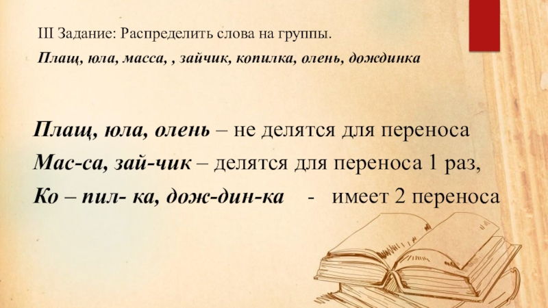 Мас-са, зай-чик – делятся для переноса 1 раз,