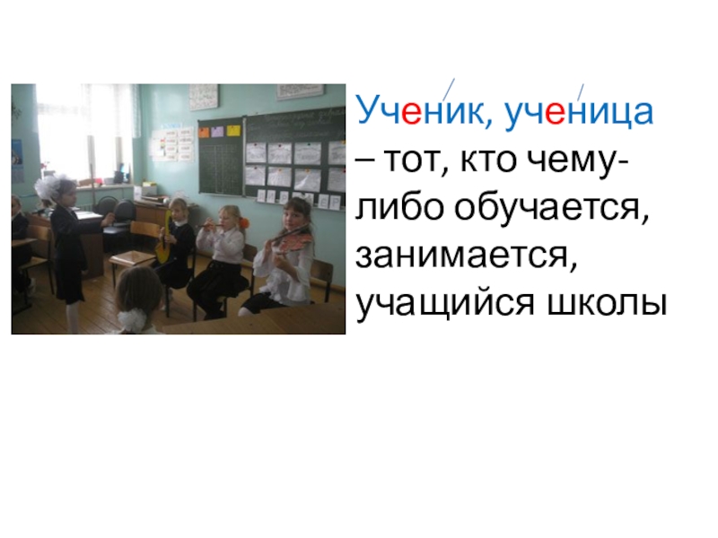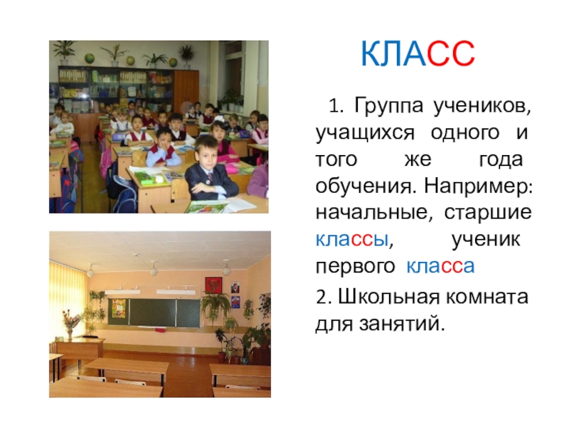 1. Группа учеников, учащихся одного и того же года обучения. Например: начальные, старшие классы, ученик первого класса