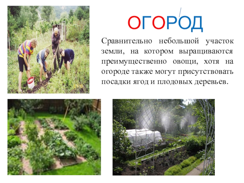 Сравнительно небольшой участок земли, на котором выращиваются преимущественно овощи, хотя на огороде также могут присутствовать посадки ягод и плодовых деревьев.