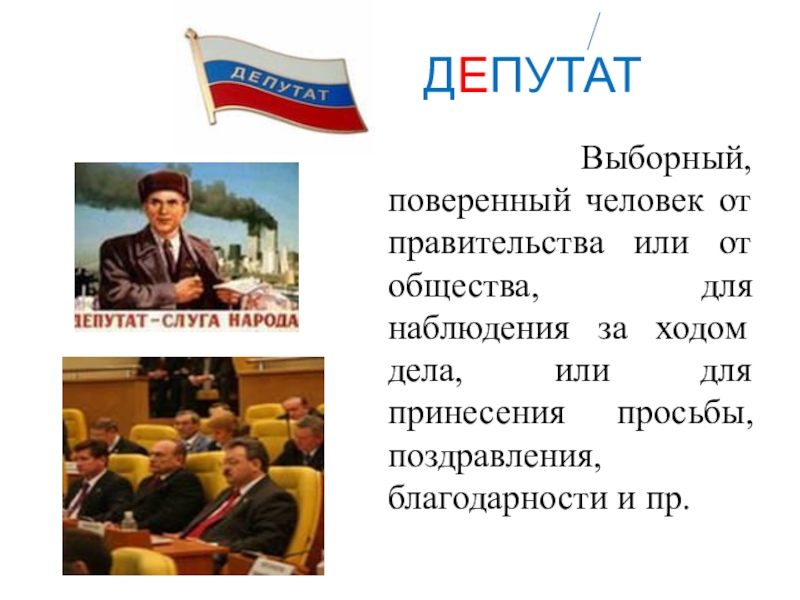 Выборный, поверенный человек от правительства или от общества, для наблюдения за ходом дела, или для принесения просьбы, поздравления, благодарности и пр.