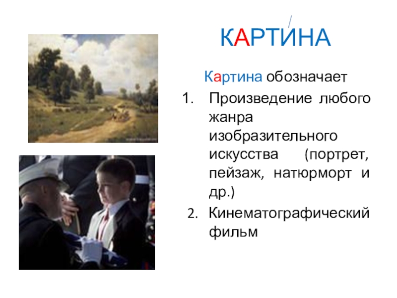 Произведение любого жанра изобразительного искусства (портрет, пейзаж, натюрморт и др.)
