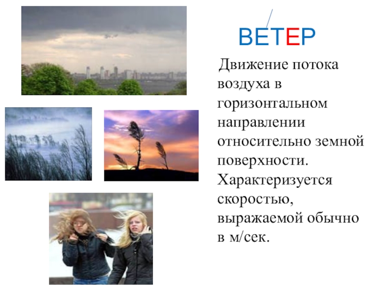 Движение потока воздуха в горизонтальном направлении относительно земной поверхности. Характеризуется скоростью, выражаемой обычно в м/сек.