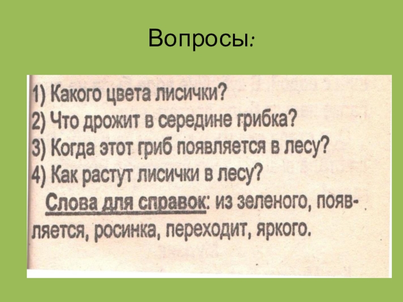ЗагадкаЭти странные лисички     Не едят цыплят.Эти странные лисички     Рядышком