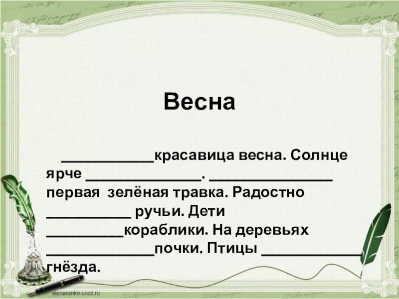 ____________красавица весна. Солнце ярче _______________. ________________ первая  зелёная травка.