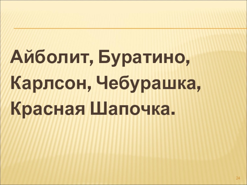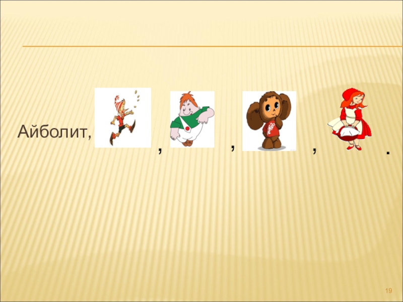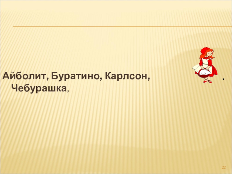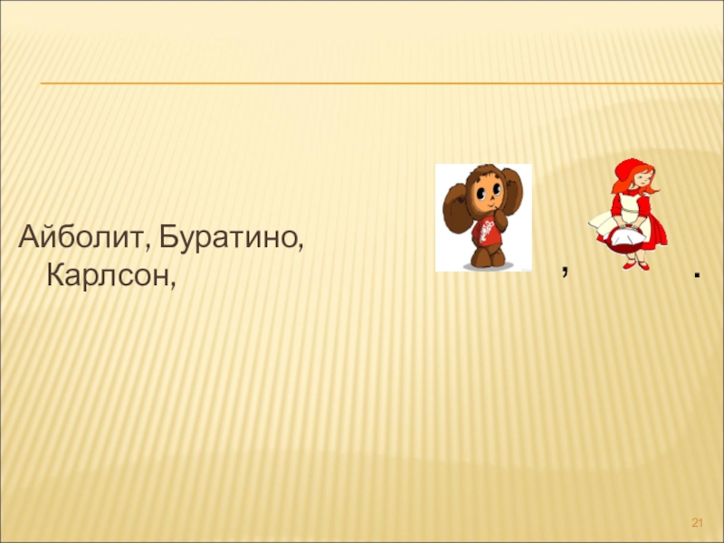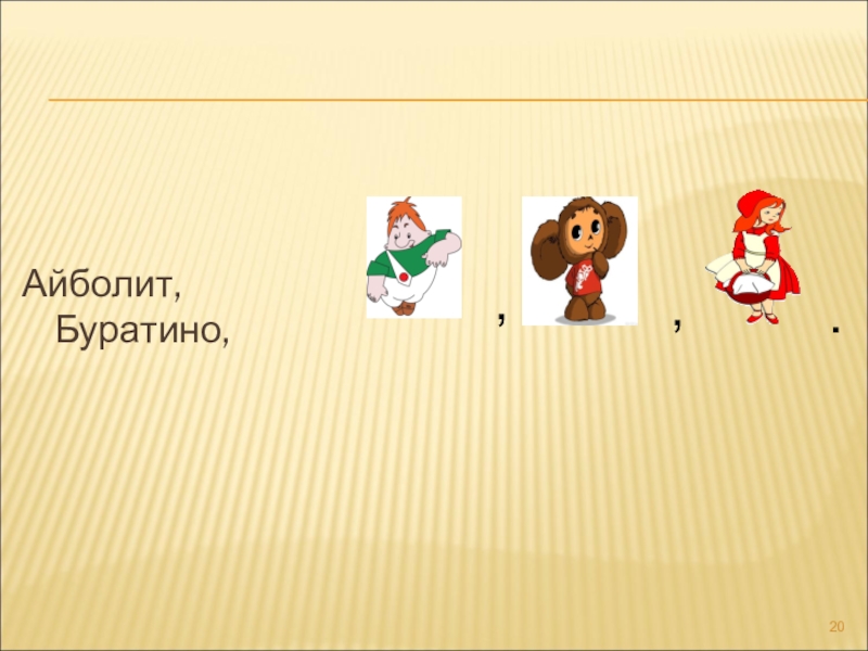 Айболит, Буратино, Карлсон, Чебурашка,.