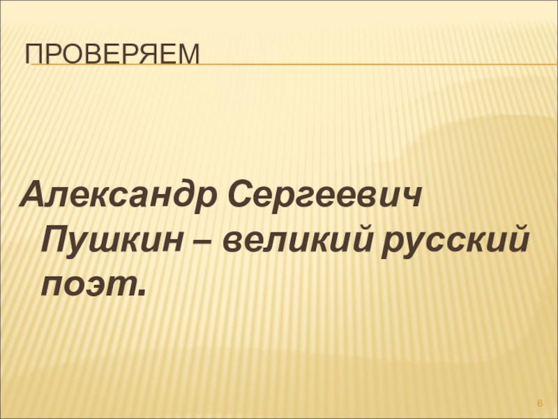ПРОВЕРЯЕМАлександр Сергеевич Пушкин – великий русский поэт.